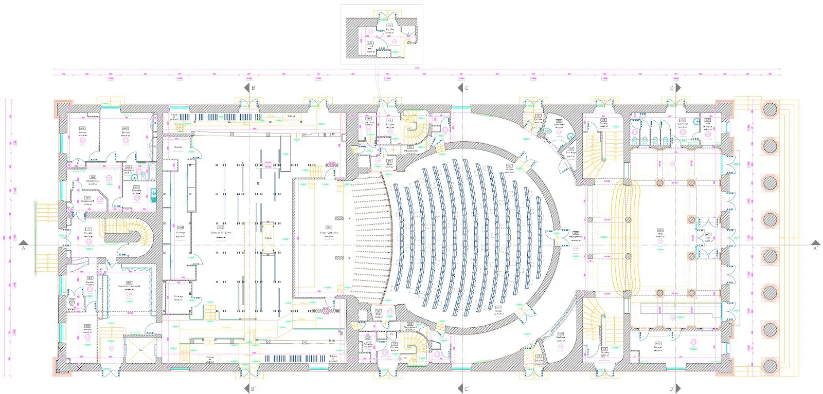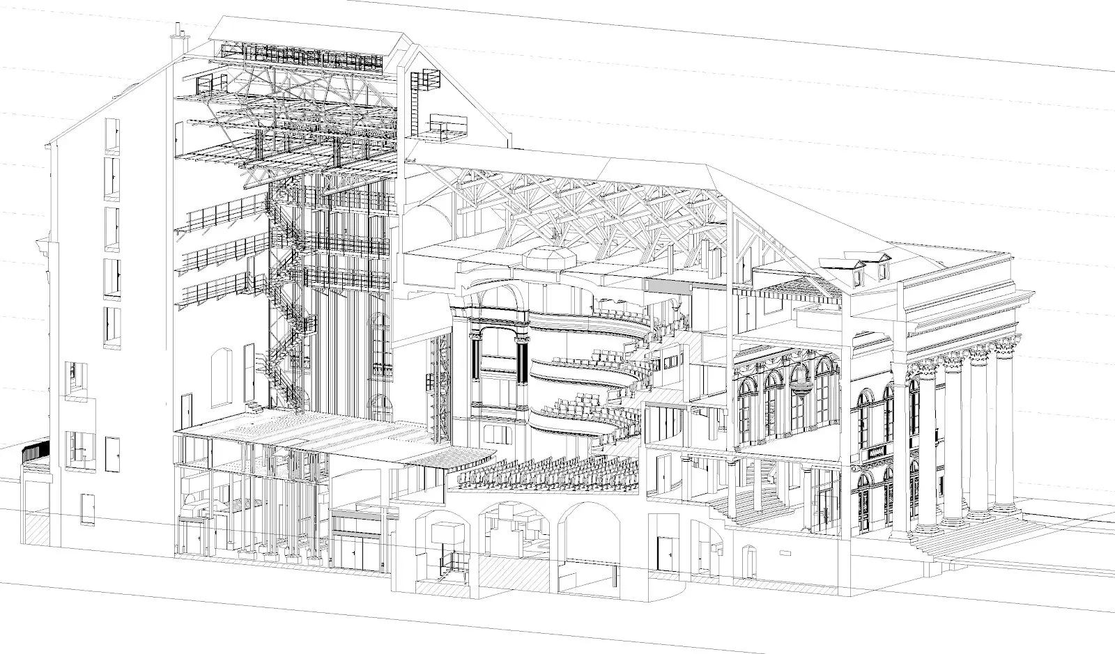 3D - ARCHITECTURE & PATRIMOINELa mairie de Dijon a missionné IDEGEO pour la réalisation d’une maquette 3D BIM, ainsi que les plans de niveaux, coupes et façades en 2D du théâtre de Dijon. Pour cette opération nous avons eu besoin du scanner 3D FARO X330 et au niveau des logiciels, nos techniciens ont utilisé REVIT ARCHITECTURE pour la partie 3D et AUTOCAD pour la partie 2D.